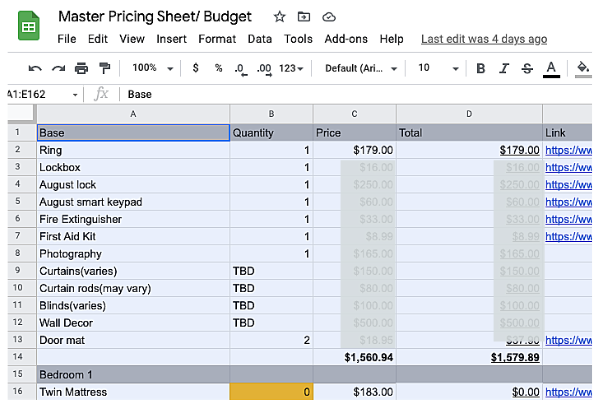 You'll find this to be a PRICELESS tool! This is a responsive file that outlines EVERYthing you need to outfit a short-term rental space. Save time and effort every time you take on a new client!